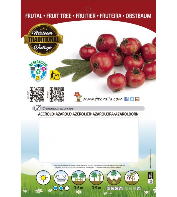 Frutal de tamaño mediano y copa redondeada, de alto valor ornamental, tanto por su floración como por sus hojas y porte. Los frutos, que maduran a principos de junio, están agrupados en racimos, son ovales de piel anaranjada y la pulpa es suculenta y