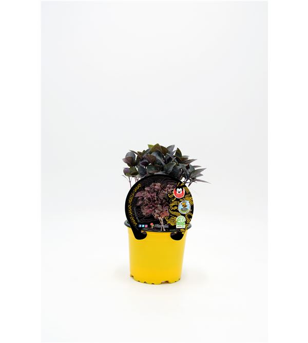 Melocotón enano que mantiene siempre su reducido tamaño. Especialmente ornamental por su follaje rojo oscuro que aparece tras su floración. Produce melocotones de color rojizo aterciopelado de buen tamaño de carne amarilla y textura jugosa, sabrosa y