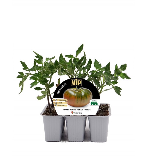 Tomate híbrido F1 tipo Raf de crecimiento indeterminado, con frutos achatados y acostillados de cuello verde intenso. Con un peso medio de 200 gramos y una textura excelente, es muy valorado por su sabor único y su capacidad para adaptarse a diversos cultivos.